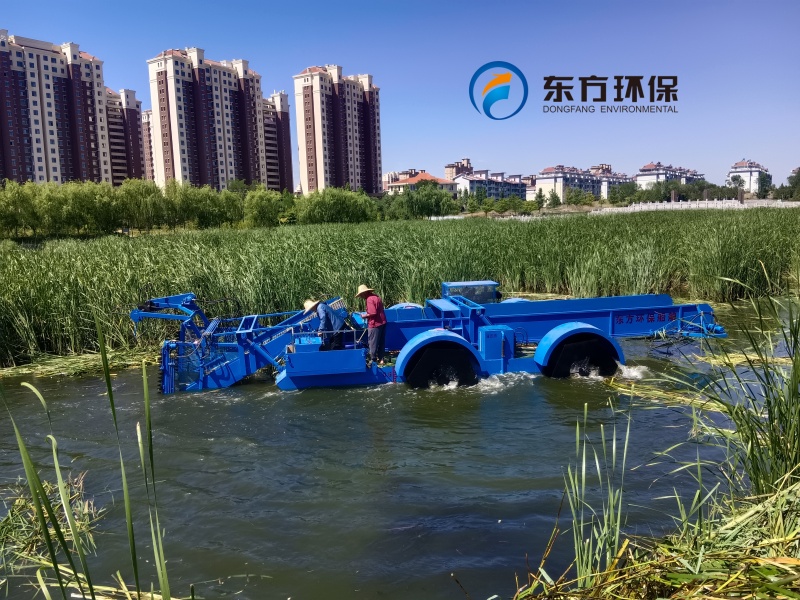 山東東平湖管理局購買的DGLW110型全自動蘆葦收割船